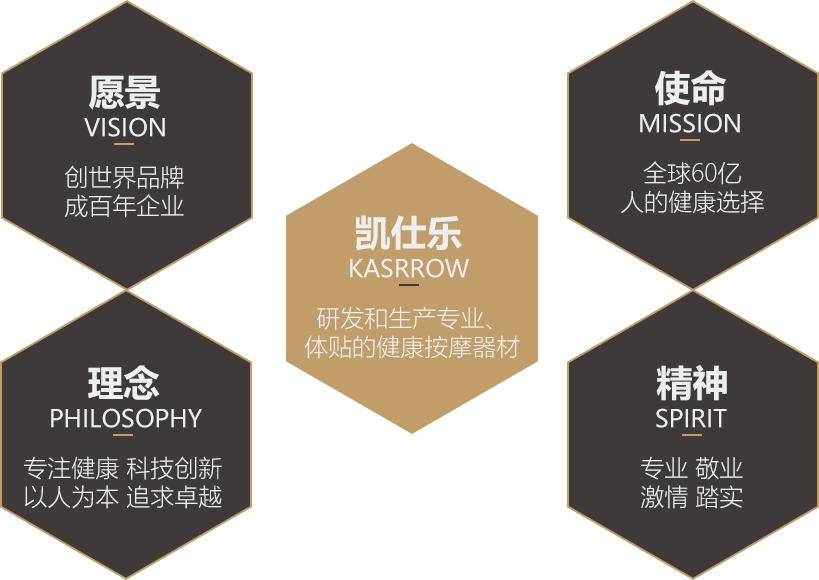 美国凯仕乐(KASRROW)秉承“专注健康,科技创新,以人为本,追求卓越”的企业理念,专注致力于按摩保健器材行业,拥有产品外观设计、机械设计、微电脑开发与应用等设计和综合开发能力, 拥有严谨的质量管理体系、广泛的营销网络、完善的售后服务系统。